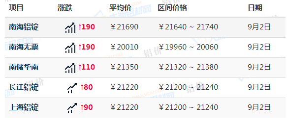 9月2日各地铝价详细为下图:
